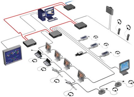 通過光纖網(wǎng)絡(luò),可以實現(xiàn)多種形式的音頻耦合,包括將多個具有幾種語言的小型系統(tǒng)耦合在一起,形成多達(dá)31 種語言的大型系統(tǒng)。另外,它還可以提取和插入數(shù)字(AES/EBU 或SPDIF)和模擬音頻。其他先進(jìn)的音頻耦合技術(shù)包括CobraNet。CobraNet由軟件、硬件和網(wǎng)絡(luò)協(xié)議共同組成,它允許使用CAT5 電纜通過以太網(wǎng)來傳播多個實時、高品質(zhì)的數(shù)字音頻通道。CobraNet便于用戶在建筑物內(nèi)傳播音頻,并將新一代DCN 連接到其他音頻CobraNet兼容設(shè)備,例如錄音機和混音器。